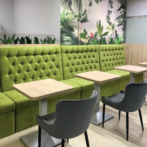 Располагающая обстановка зоны фудкорта играет большую роль для посетителя, так как, если ему комфортно и уютно, он будет возвращаться сюда снова и снова. Поэтому основной задачей при реализации проекта становится создание уютного и комфортного интерьера, учитывая особенность подобных заведений — высокую проходимость