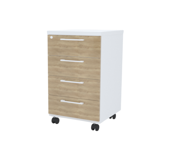 Подкатная тумба ставится под стол и имеет колесики, что придает ей мобильности. В зависимости от функциональных потребностей такие тумбы могут быть оснащены ящиками, полками, по желанию заказчика можно встроить замок.