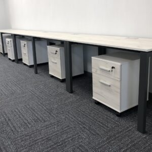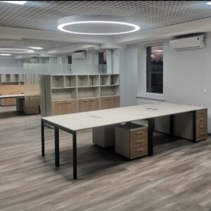 Каждое рабочее место оборудовано отдельной столешницей. Между собой столешницы имеют отступ в 30 мм для возможной установки экрана-перегородки.