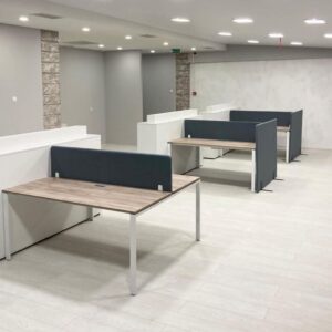 Каждое рабочее место оборудовано отдельной столешницей. Между собой столешницы имеют отступ в 30 мм для возможной установки экрана-перегородки.